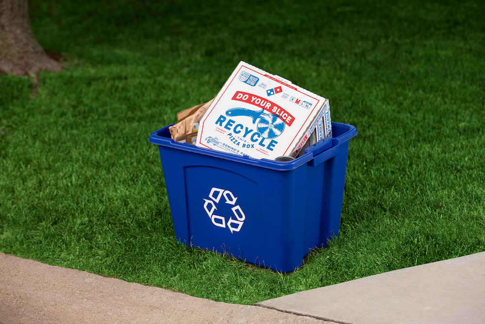 To encourage consumers to recycle its boxes, the company has released new boxes that feature an image of a pizza cutter along with the words "Do Your Slice, Recycle This Pizza Box" emblazoned across the top. The box also includes a QR code that directs customers to a website where they can find our more about local recycling guidelines.
