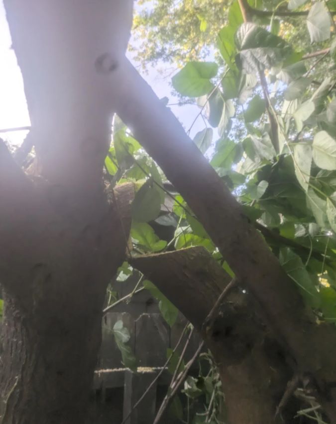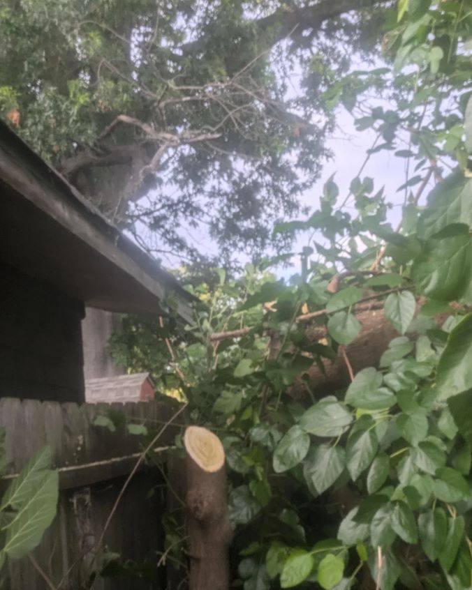 "Neighbor cut down my dad's tree and it wasn't on their property," wrote the OP. "Can my dad claim for property damages in court? I have security camera footage of them on top of their shed leaning over with a 4 foot extended chain saw chopping away. When I walked into the yard they heard me and scurried away."