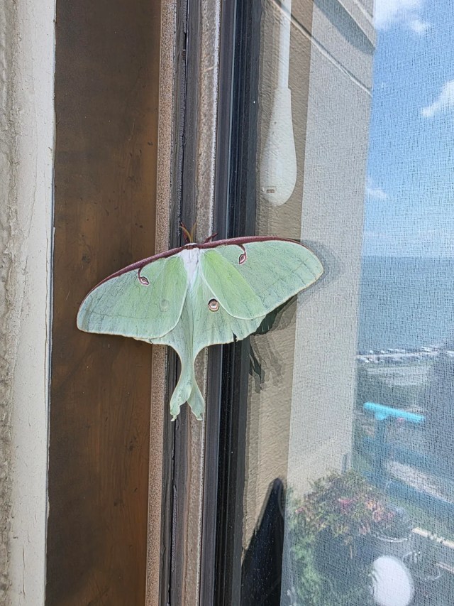 The Redditor shared that they were tidying up their 17th-floor balcony garden when a flash of mint green on the sliding door caught their eye. On closer inspection, it wasn't a leaf, but a Luna moth.