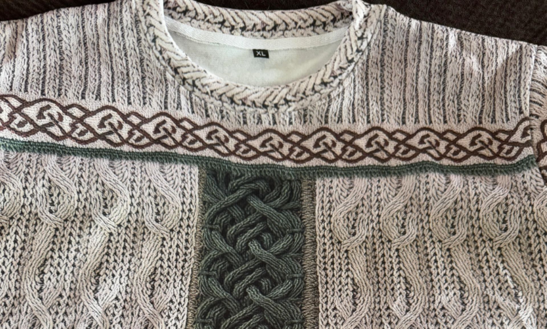 "My wife ordered a very nice Irish sweater from a site called ArtsWardrobe.com. It looked like a really awesome knit (actually a fairly complicated pattern) in the image. [What she received was] a printed sweatshirt with poorly-sewn hems on a low-quality polyester fabric," they noted.