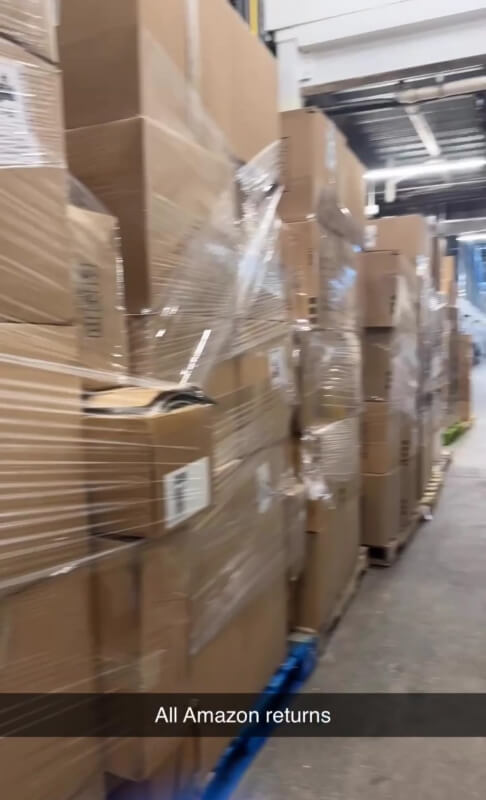 "Six full pallets of returns that will more than likely go to the landfills," the poster wrote, adding that they shared this with friends and family who regularly use Amazon, hoping to influence their shopping habits.