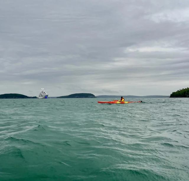 It was just another day in Bar Harbor, Maine, when a solo kayaker and a billionaire crossed paths. As shown in this Reddit photo, you can see the original poster's red kayak on the water as a massive yacht looms nearby.