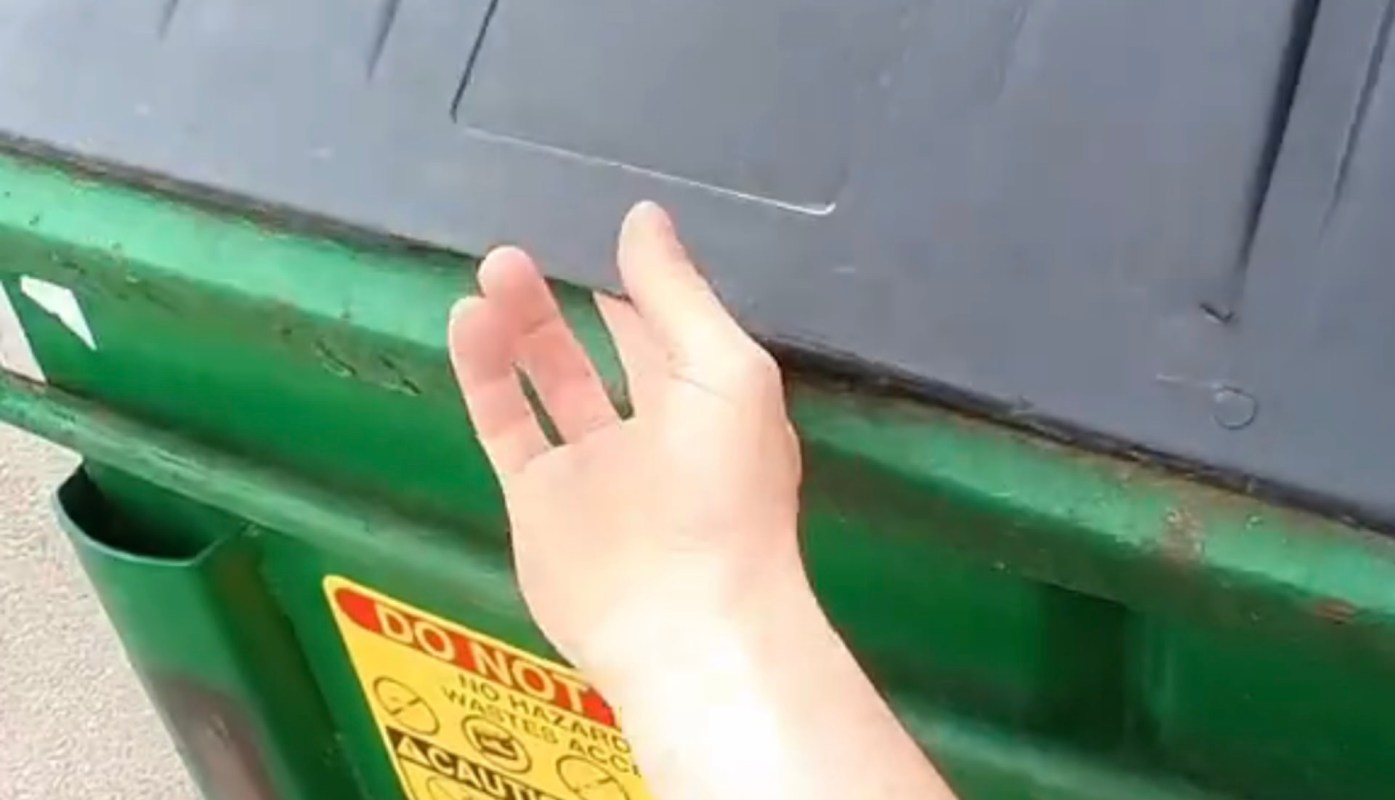 The video shows a dumpster diver hopping into a Bath & Body Works dumpster. They pull open a few garbage bags to find tons of unused products discarded for no apparent reason.