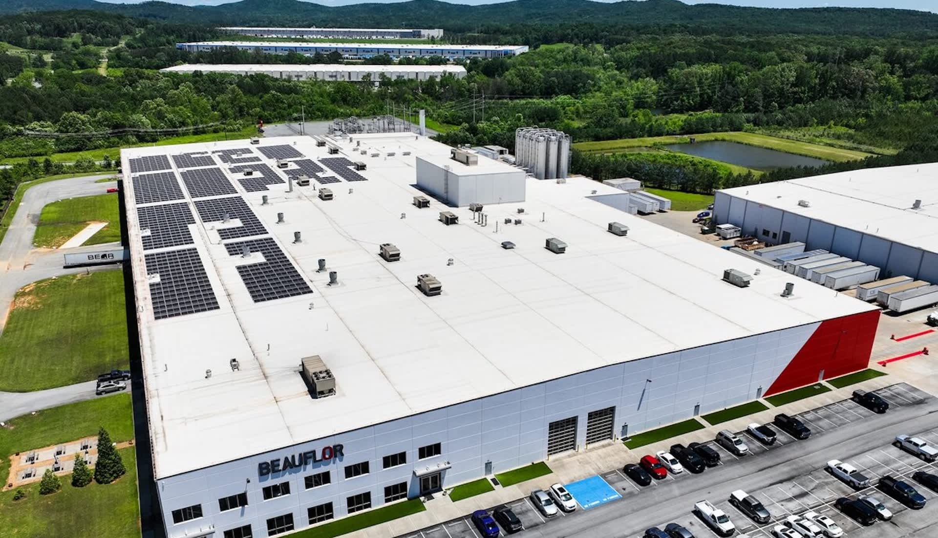 According to Electrek, the rooftop solar on the Beauflor USA building is a 1,040-kilowatt system, with the ability to cut the manufacturer's carbon pollution down by 1,014 tons per year.