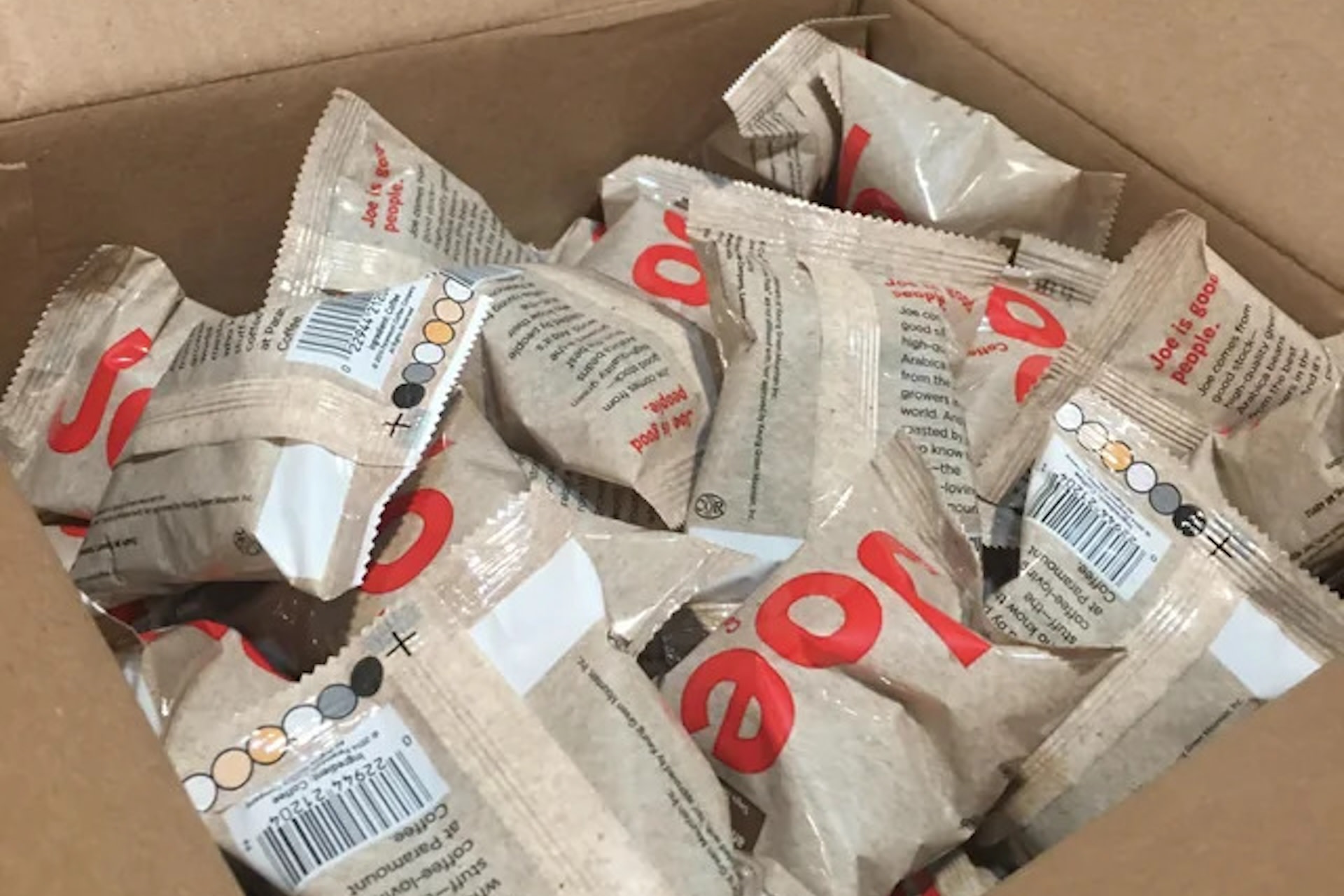 While the pods may be commercially compostable — a much better option than many single-use coffee pods — the plastic wrapping certainly is not.