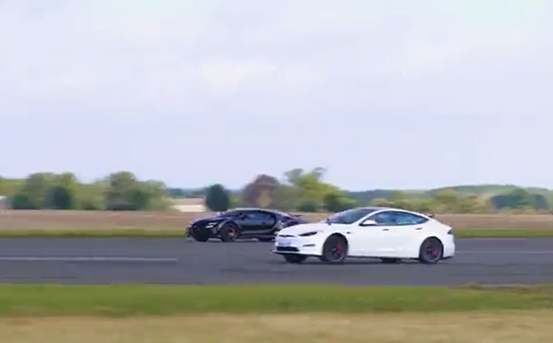 But the Bugatti just caught the Tesla as it reached the quarter-mile marker, although both still managed to do so in 9.6 seconds, with the former just fractionally ahead by the finish line.