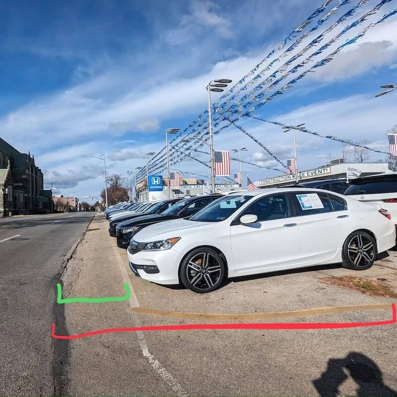 "Spotted this car dealership using the sidewalk as its own parking lot," the OP wrote above the photo.