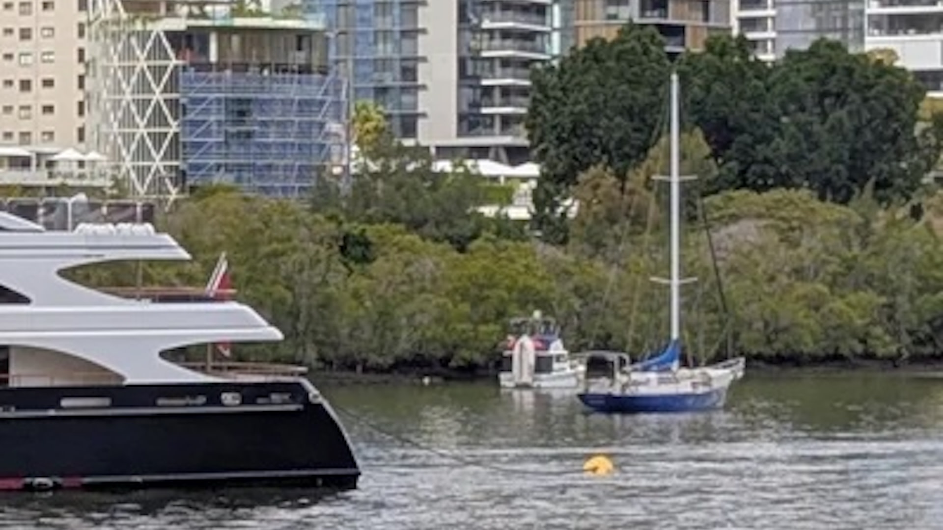 An image of Clive Palmer's yacht docked in the Brisbane River was posted on the subreddit r/brisbane.