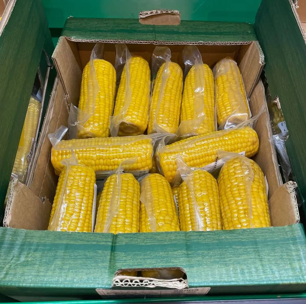 As the original poster pointed out, this approach to selling corn is wasteful. It takes time, labor, and energy to shuck the corn, trim it, and package it, and taking it from the field to a factory to the store means extra transportation costs — expenses that are passed on to consumers.