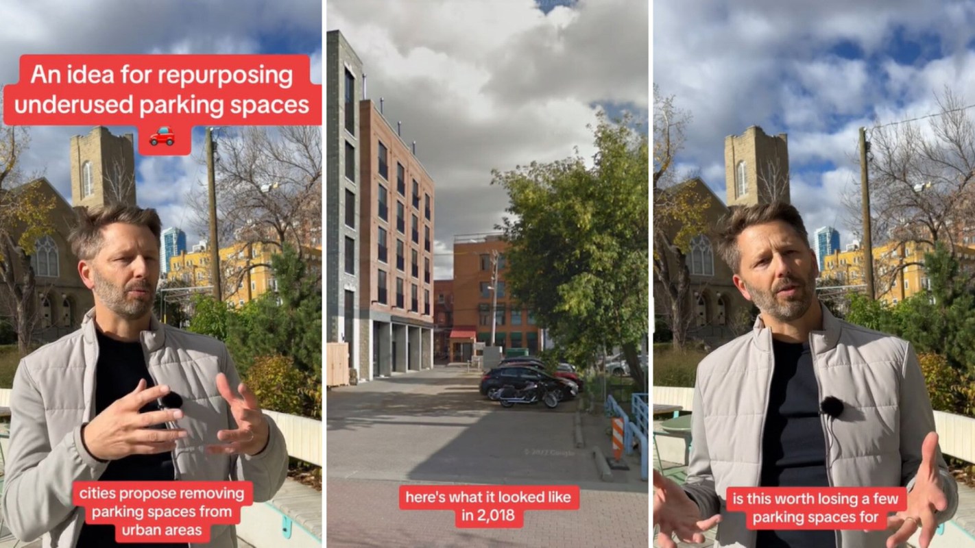 TikToker TomBabin (@tom_babin) recently shared the revitalization of a parking lot in the Strathcona district of the Oil Capital of Canada, saying the space gave way to an addition that houses a bakery plus a pedestrian area.