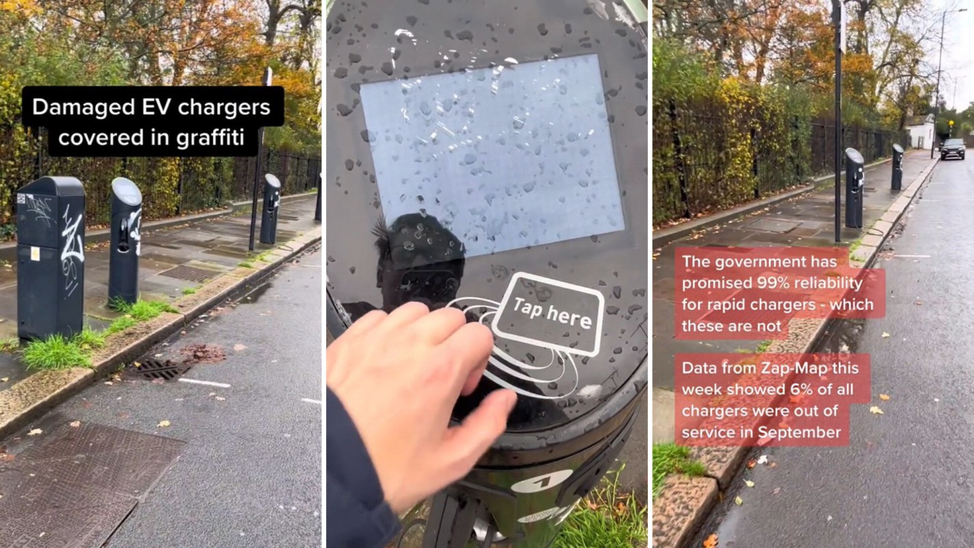 An electric vehicle expert on TikTok decried the state of four publicly accessible electric vehicle chargers in the United Kingdom.