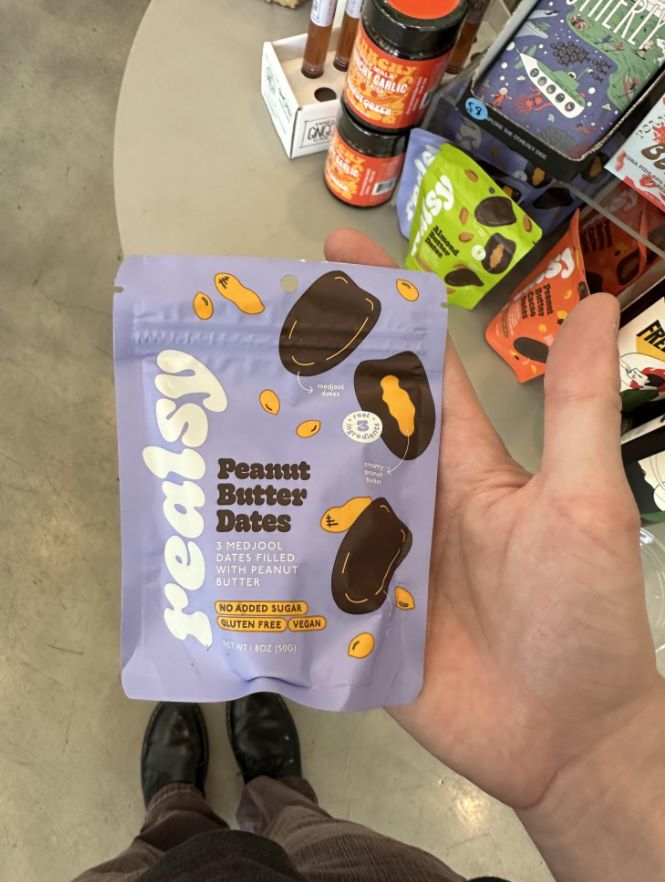 In a Reddit post, a shopper shared a photo of a palm-sized bag of "realsy" peanut butter dates, calling out its large size for just three (3) dates with some peanut butter inside, and their other offering of individually wrapped dates.