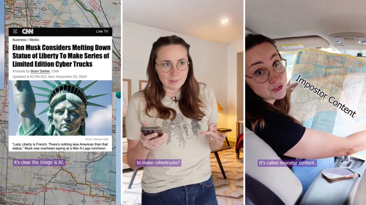 "Don't let your beliefs about Cybertrucks and flying cars drive you down a road littered with impostor content," the group wrote on the post. "Best to stay in the fact-finding lane."