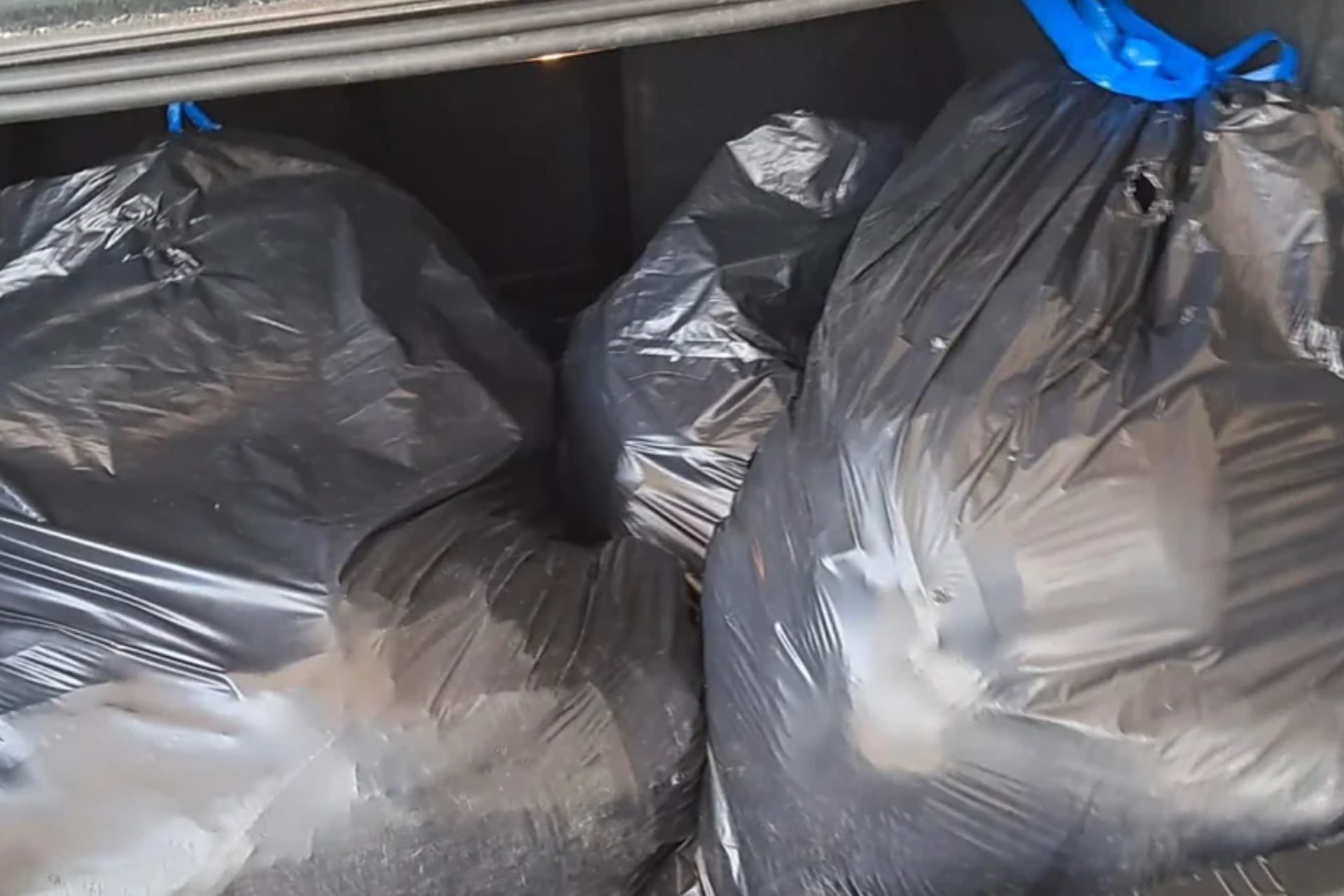 "Rescued three giant bags worth of clothes from a thrift store dumpster," they wrote in the post. They attached photos showing what they could salvage but also how many bags were still left in the trash.