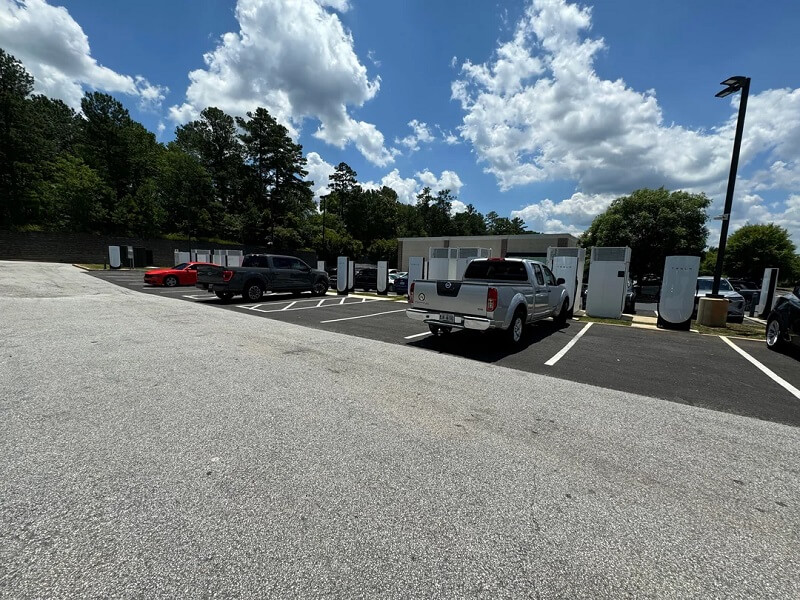 A Tesla driver arriving at a charging station in Covington, Georgia, was frustrated to see that every spot was already taken — but not by electric vehicles.