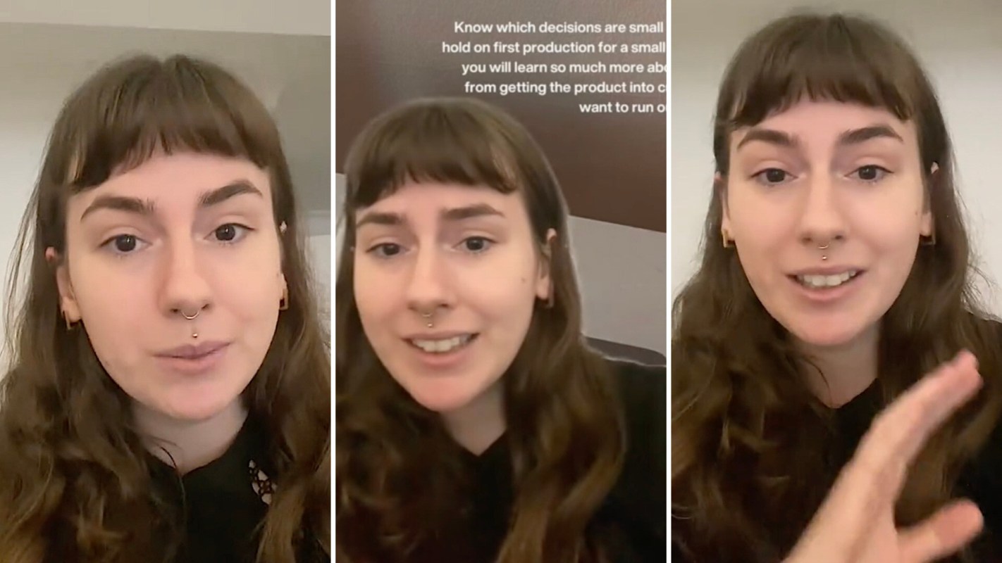 "Basically, Grace posted this on Instagram last night," Westrap explains, sharing a screenshot of a carousel titled "Things I wasted money on as a baby CEO." In one of the slides, Beverley lists "too many rounds of sampling" as one of the actions she'd avoid going forward. Instead, she says she would roll out an imperfect product and refine it in future releases based on feedback.