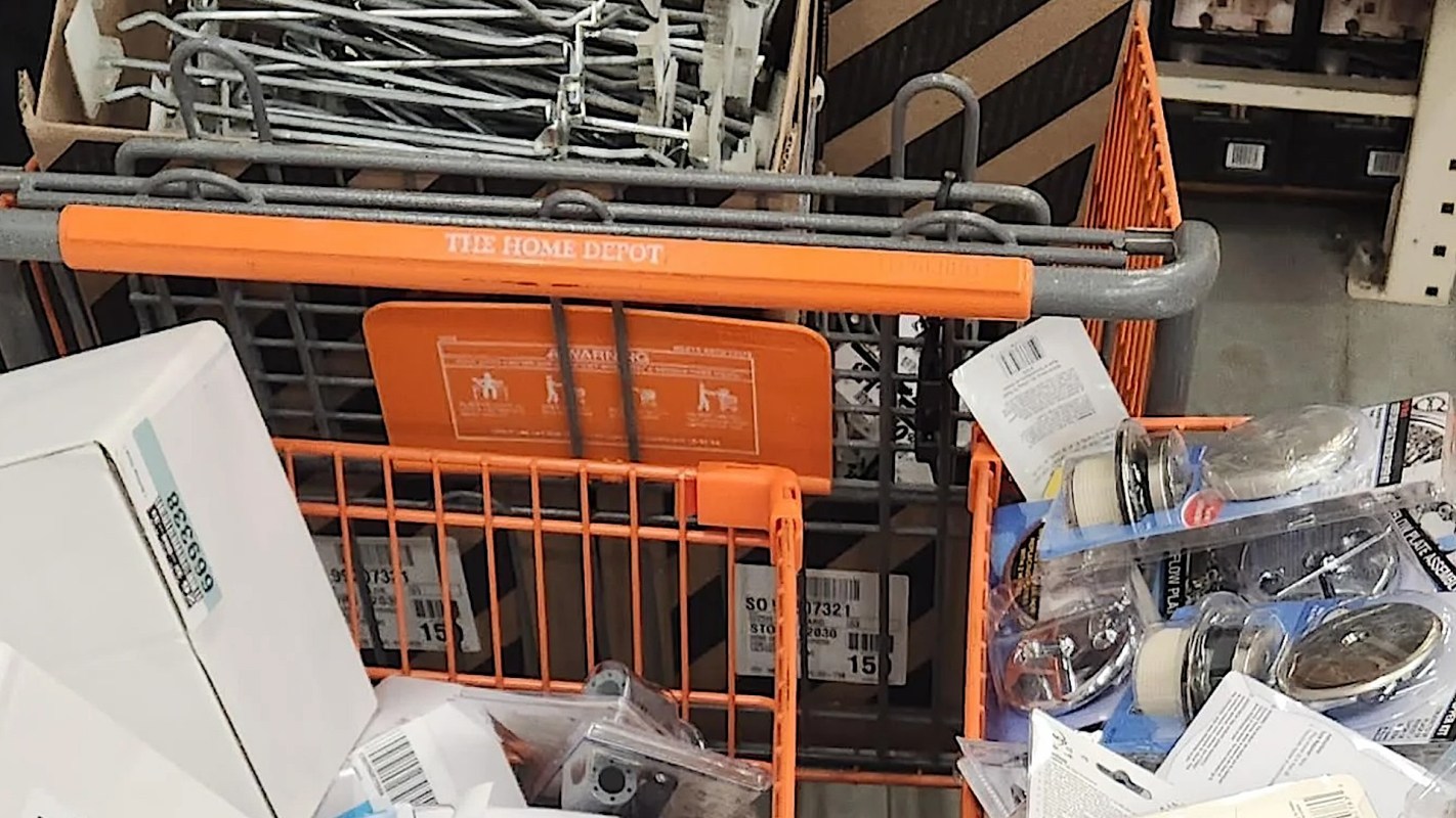 Home Depot employees are speaking out about the company's waste management practices. The original poster shared a photo showing three shopping carts packed with individual plumbing supplies destined for disposal.