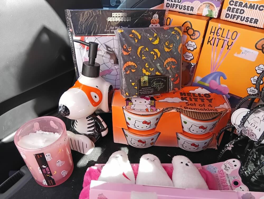 In the r/DumpsterDiving subreddit, one user shared several photos of their finds, which included several adorable Hello Kitty ceramic reed diffusers, Halloween candles, napkins, soap dispensers, Hello Kitty ramekins, candlestick holders, 10 wine glasses in mint condition, lip balm, and more.