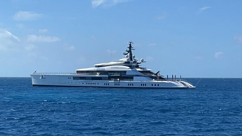 The ship, dubbed Bravo Eugenia and built by specialist manufacturer Oceanco, is about 360 feet long, has 30 crewmembers, and was spotted near Harbour Island in the Bahamas. The owner, Jerry Jones, has an estimated net worth of $17.7 billion, thanks in part to significant oil investments.