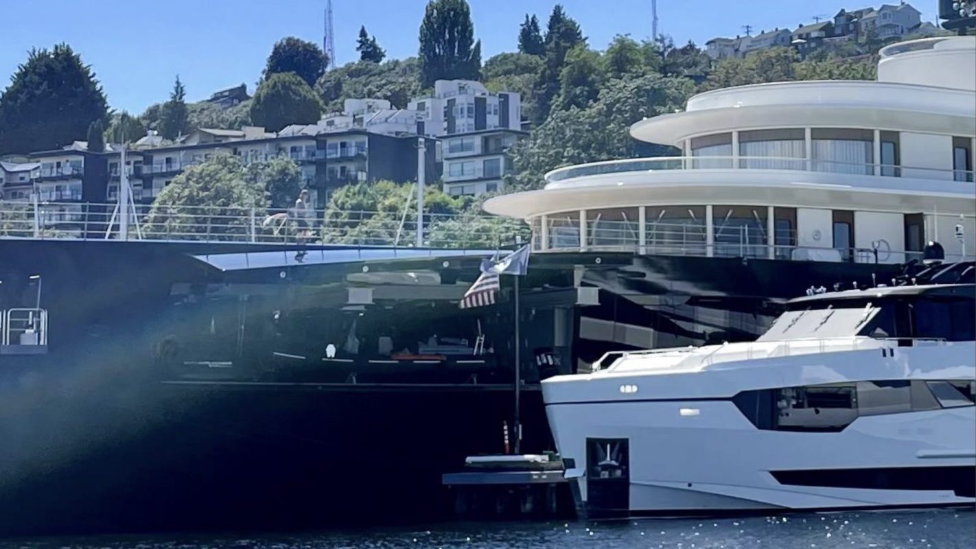 "Kinda has Titanic vibes. Lake Union, Seattle," the original poster wrote. The picture showed a megayacht docked next to two smaller yachts, with plenty of extra room for a third to stretch the entire length of the massive boat.