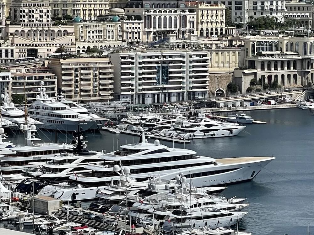The pic shows scores of yachts and superyachts docked at Port Hercule in Monaco, denoting thousands of tons of CO2 emissions and more cash than anyone could spend in 100 lifetimes.