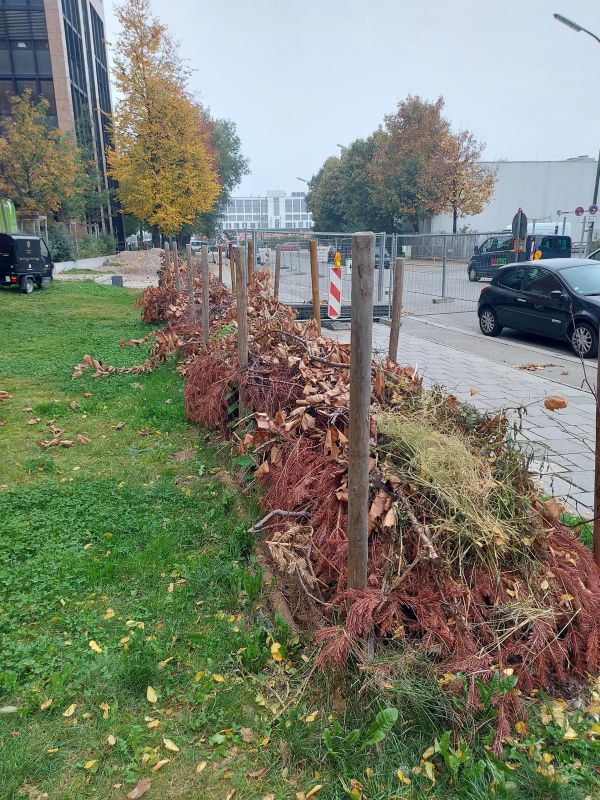 While the original poster didn't include any more explanation of the design besides their caption, using waste vegetation in this way helps encourage a diverse local ecosystem by attracting native insects and birds.