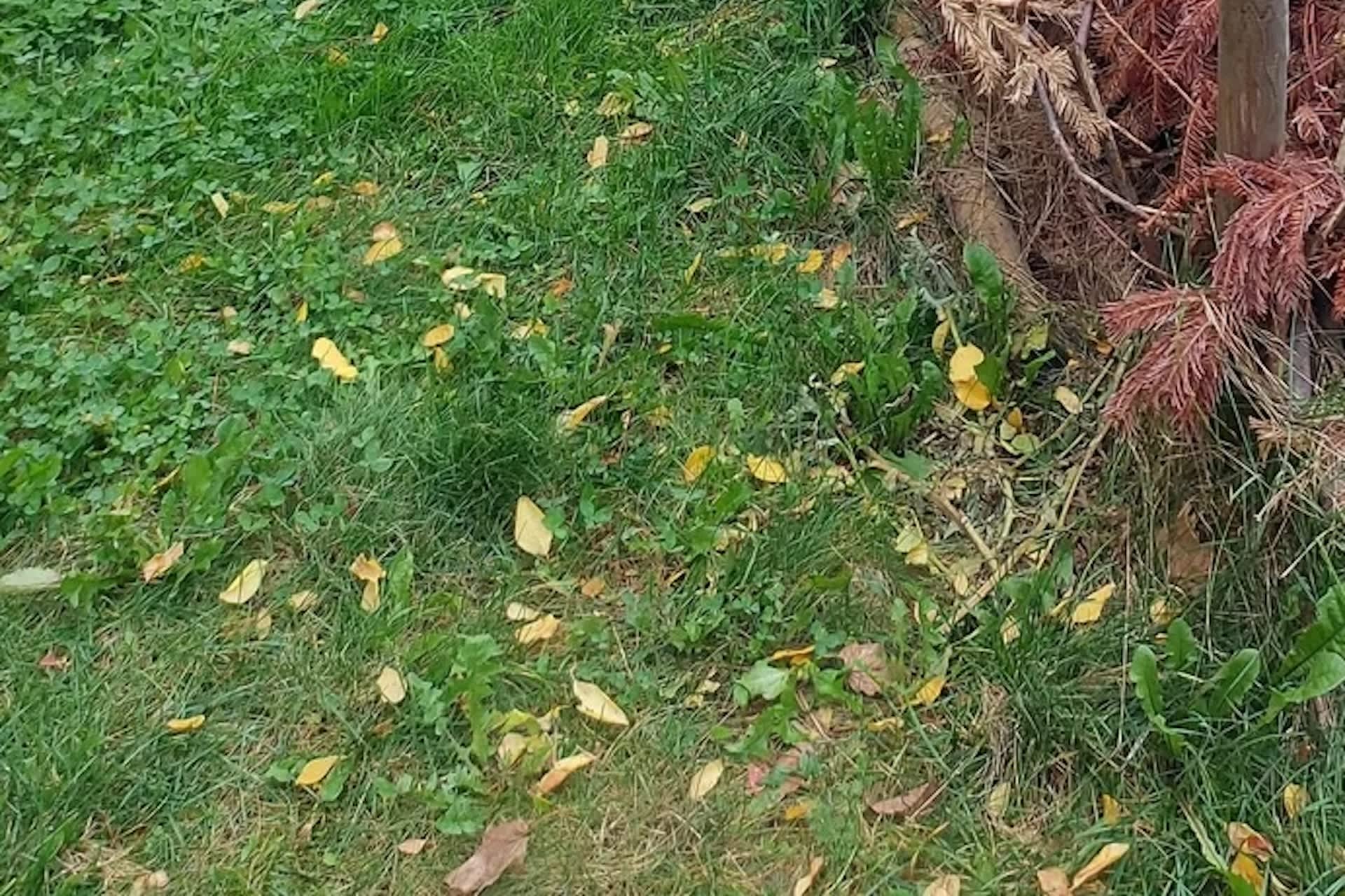 They captioned the photo of the yard, "Waste vegetation from hotel groundskeeping is bounded alongside the pavement to create insect and bird habitat."