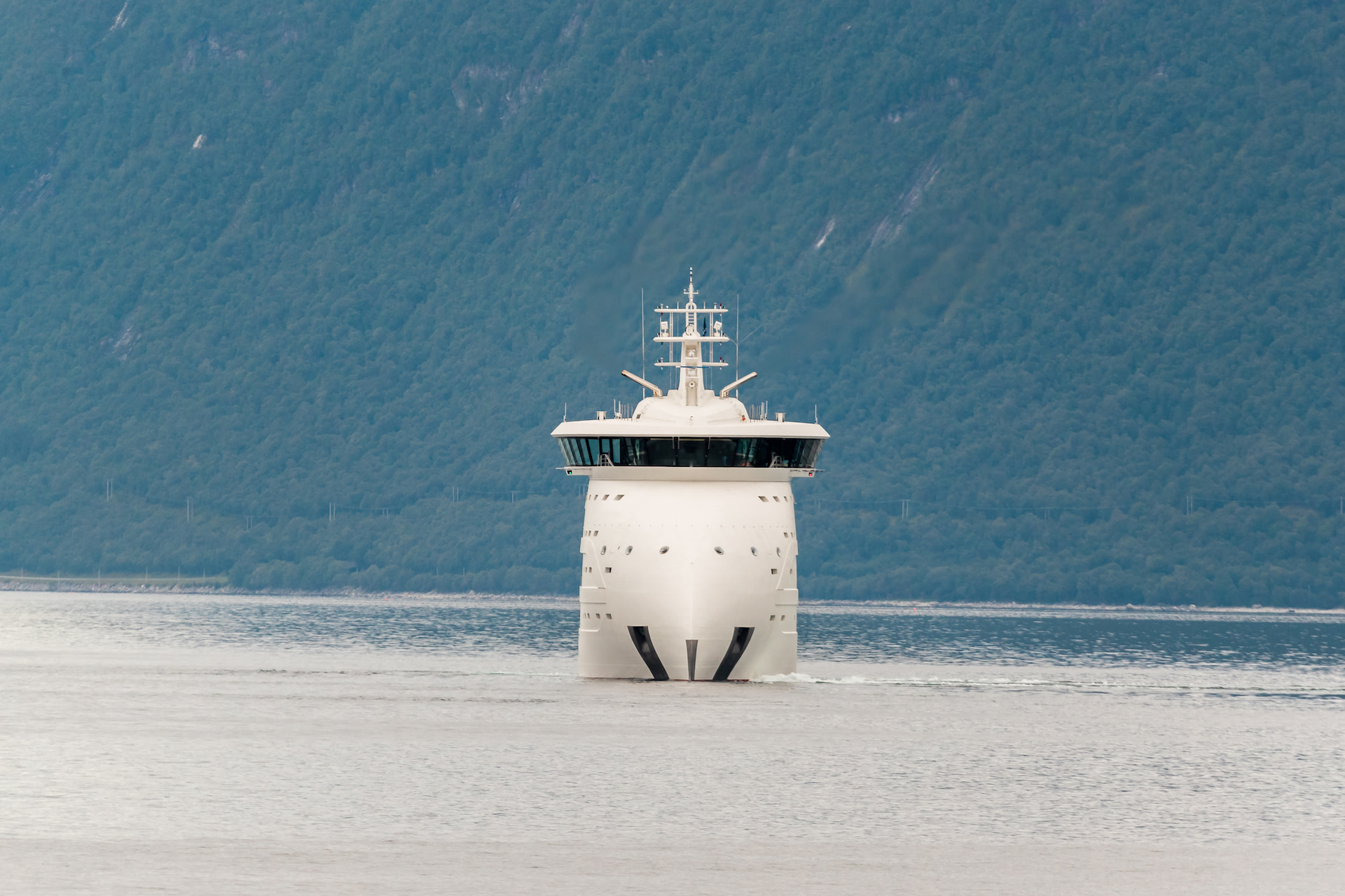 They revealed they came across the massive yacht in Mykonos, but it wasn't visible on a map and they weren't sure whose it was. The aggressive and inverted whale-shaped bow draws immediate attention, as does the enormous size and military-style appearance.