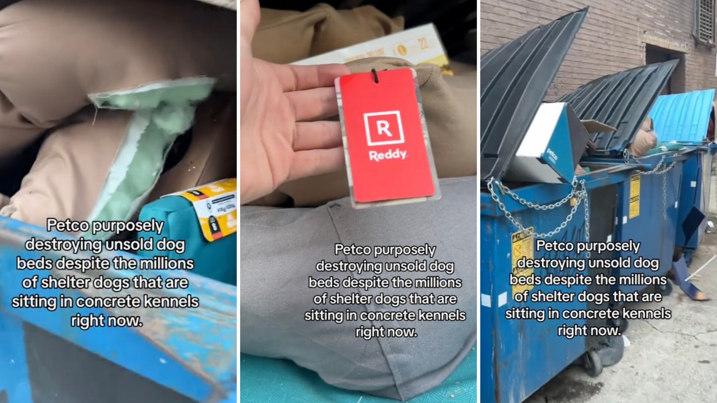 Dog beds were found slashed and trashed behind a Petco by a TikToker in Chicago, sparking outrage for this wasteful practice.