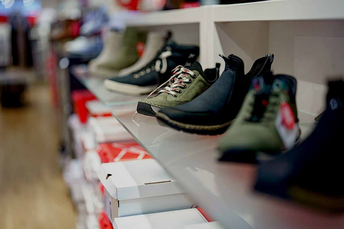The user uploaded a photo that showed a couple of dozen shoes on display inside a mall sneaker store, all wrapped in plastic.