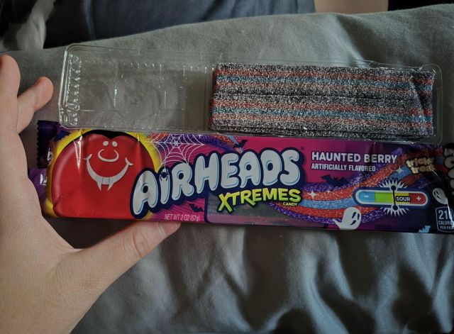 In the post, the customer shared a photo of a package of Haunted Berry Airheads Xtremes they had purchased. The candy occupied approximately two-thirds of the plastic packaging; the remainder was empty space.