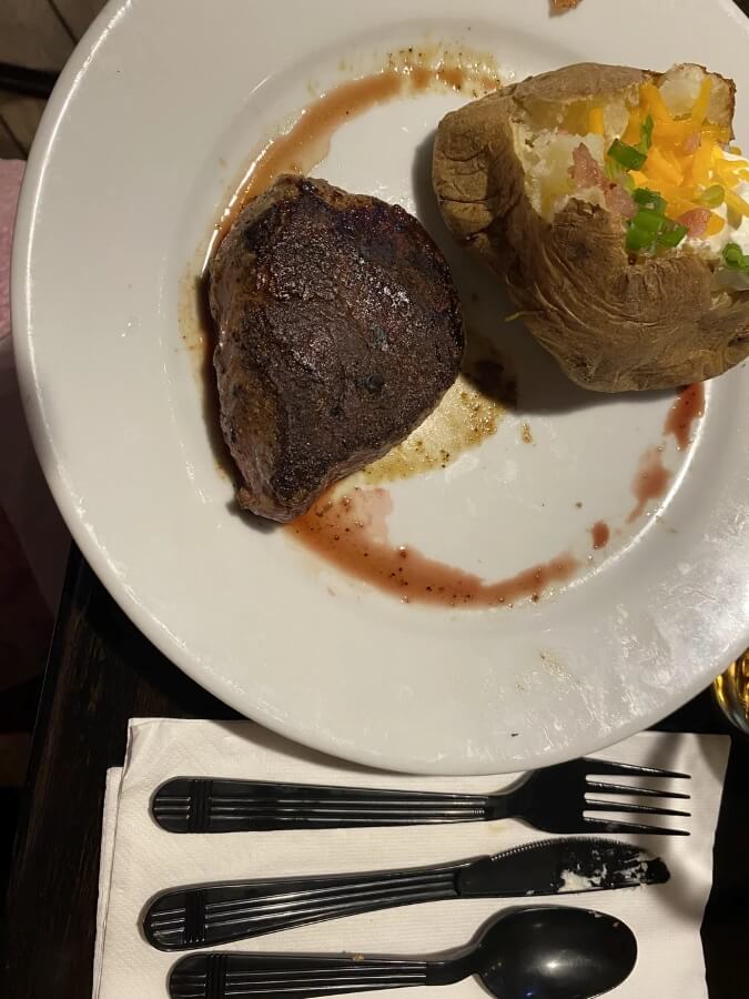 A Reddit user went to Longhorn Steakhouse for a meal and was shocked when their server gave them plastic cutlery to cut their steak. They posted a photo of the incident in r/mildlyinfuriating, which showed a plastic fork, knife, and spoon sitting next to their plate.
