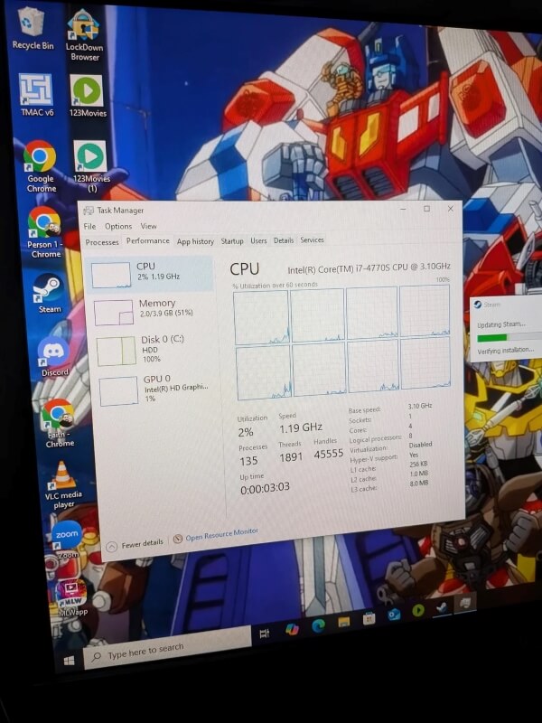 Though the hard drive was failing, the monitor booted into Windows with programs such as Discord and Steam still logged in.