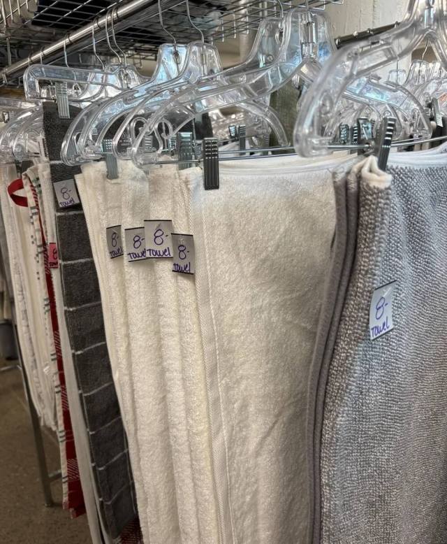 "Saw these towels for $8 EACH at Salvation Army," the original poster wrote, alongside a photo of the hung towels.