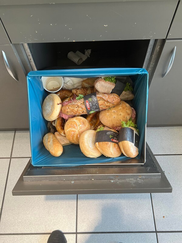 The post shows delicious-looking sandwiches along with several nice pieces of bread that they were forced to throw away. You can see the sandwiches are wrapped and nearly photo-perfect.