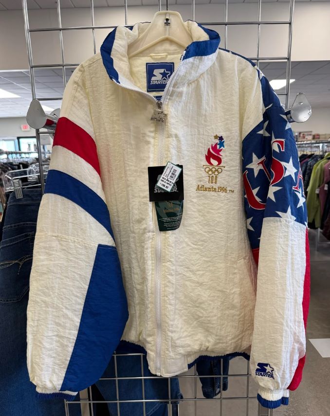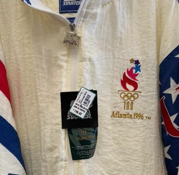 In the r/ThriftGrift subreddit, a shopper shared a photo of a brand new, with tags, Starter brand jacket from the 1996 Olympics in Atlanta. The catch? The store was selling it for $198.82.