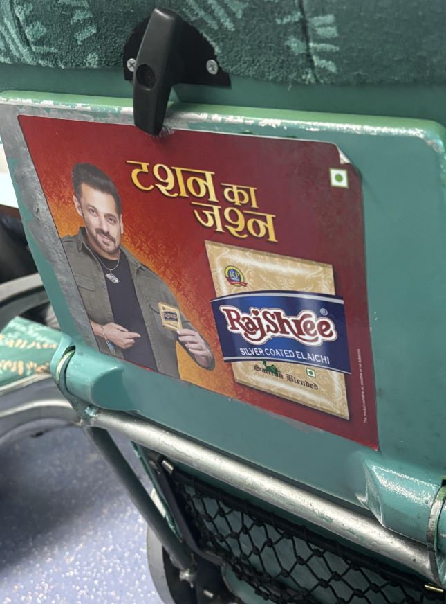 A simple train ride became the source of tremendous frustration for a passenger in India, who noticed every seat was covered with controversial advertising.