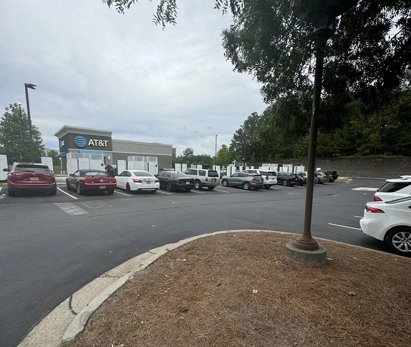 In the r/TeslaLounge community, a Redditor shared a photo of an AT&T parking lot in which gas-powered vehicles were taking up spots intended for EVs. "Tesla Chargers in Georgia," they wrote.
