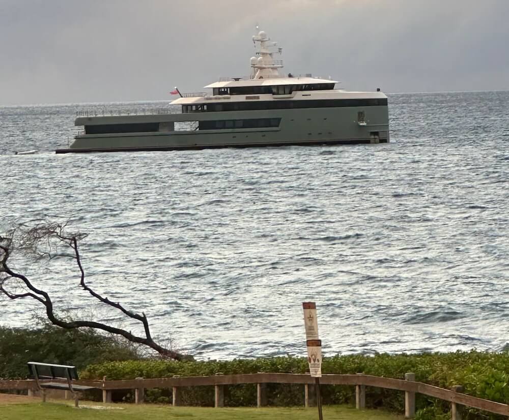 A user on the r/maui subreddit spotted a massive yacht off the coast of Kamaole Beach Park III (aka "Kam III") in Hawaiʻi.
