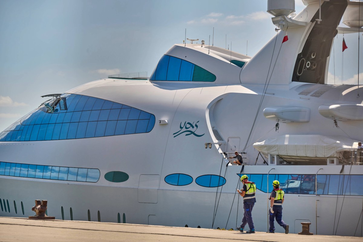 According to other people in the comments, it is known as the Yas Yacht, one of the largest superyachts in the world at 463 feet in length, per Super Yacht Fan. It's capable of holding 60 guests and 56 crew, and it has a beauty salon on board.