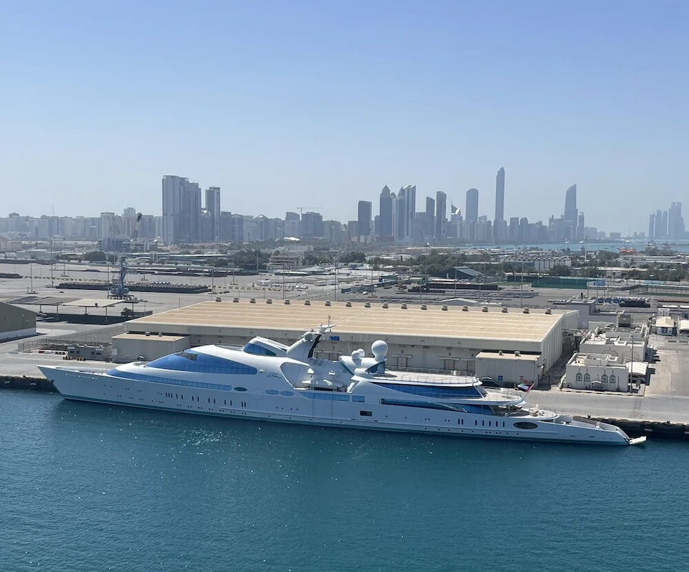 In the r/yachtporn subreddit, the original poster shared a picture of an incredibly long vessel seen in Abu Dhabi while on a cruise.