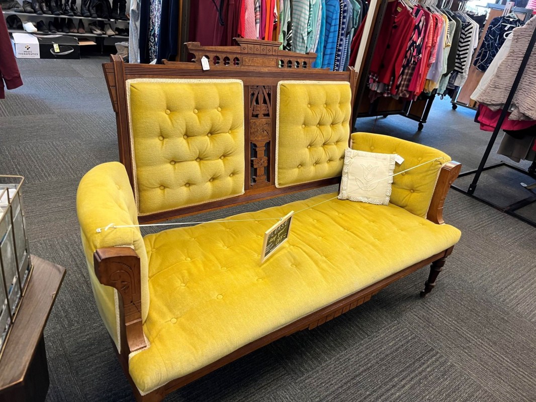 In a popular post on r/ThriftStoreHauls, a user shared a photo of a gorgeous antique sofa with yellow cushions and carvings embedded into the frame. The couch was listed at $525, which flabbergasted the user because it seemed expensive — until other users revealed the truth in the comments.