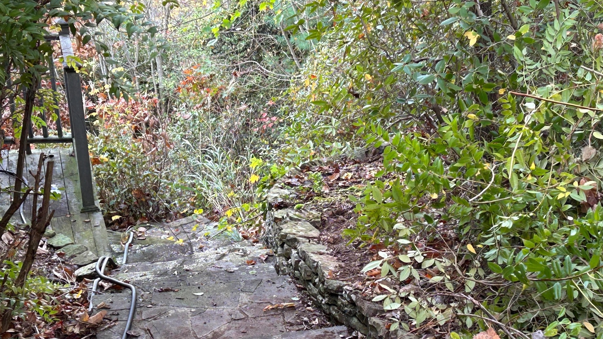 "I'm clueless on this side as the ground is basically unusable, it's all buried flagstone and rocks that nature reclaimed. The ground feels squishy in places and I think there is landscape fabric or paper or something that is at least 25 years old and is root bound," they wrote. "This area feels screwed and I don't know what to do."