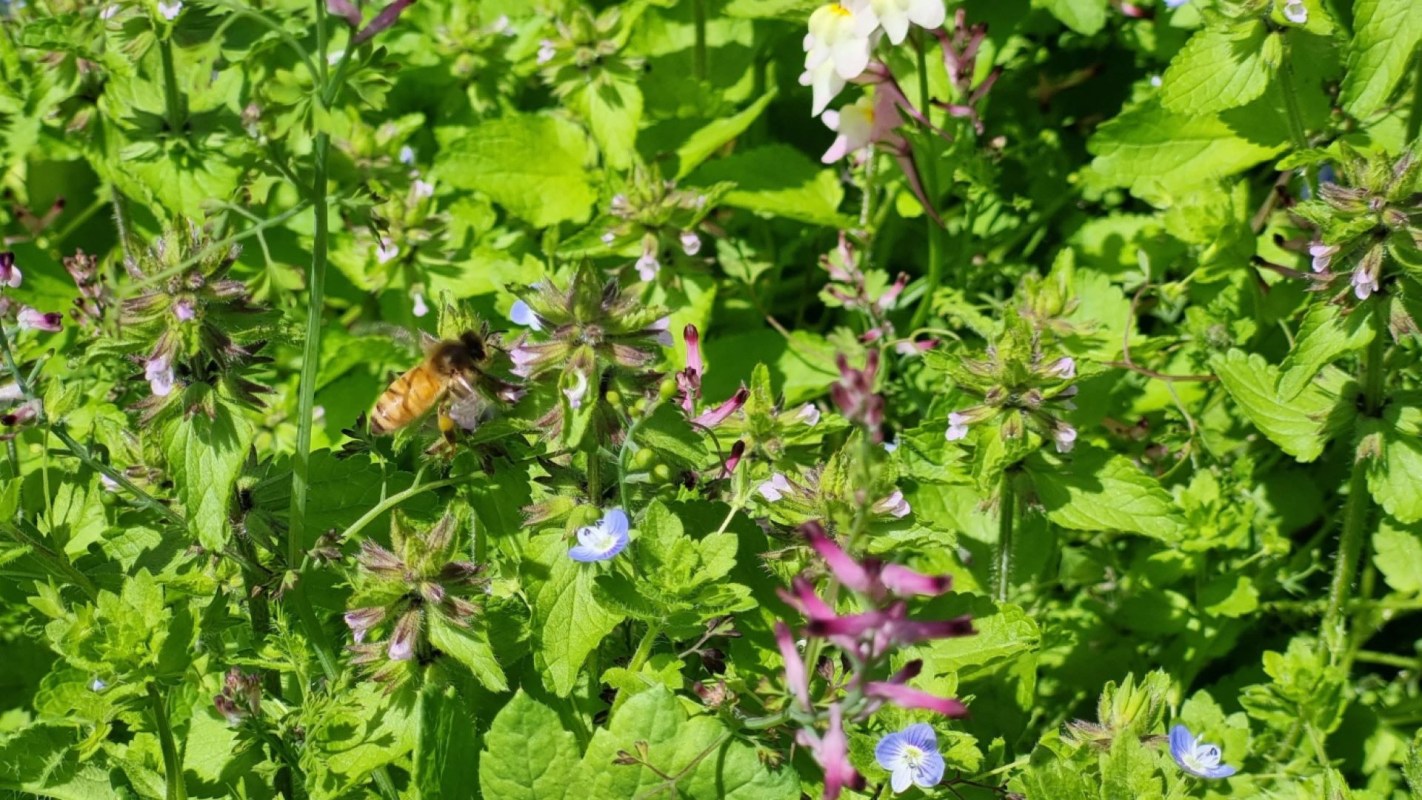 Even without a proper hive yet, OP explained, there are "plenty of bees and bumblebees around. They especially love lavender and germander plants we have in the back yard. You can literally hear those plants buzzing all summer."