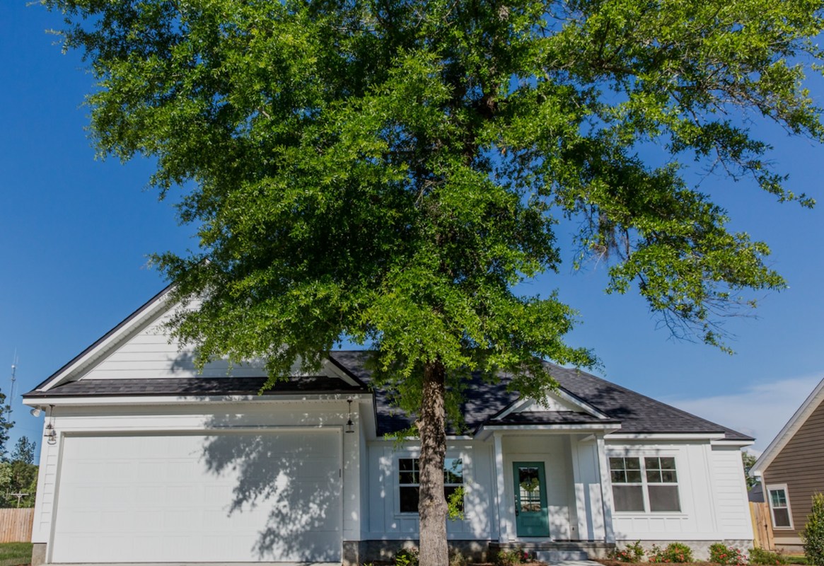 The photo showed an established tree about a foot wide. A concrete driveway had been poured into the area around the tree, leaving only a small, circular opening for the trunk that was filled with gravel. The tree itself looked healthy — for now.
