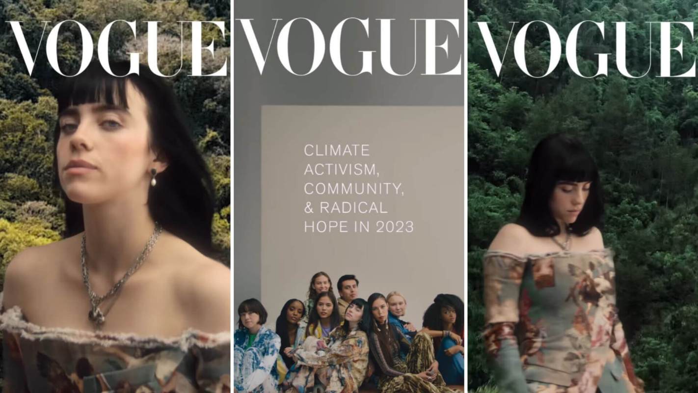 "It's thanks to her that I know anything," Eilish said during a new Vogue cover feature, which features the singer discussing climate anxiety and other issues with a group of young activists.