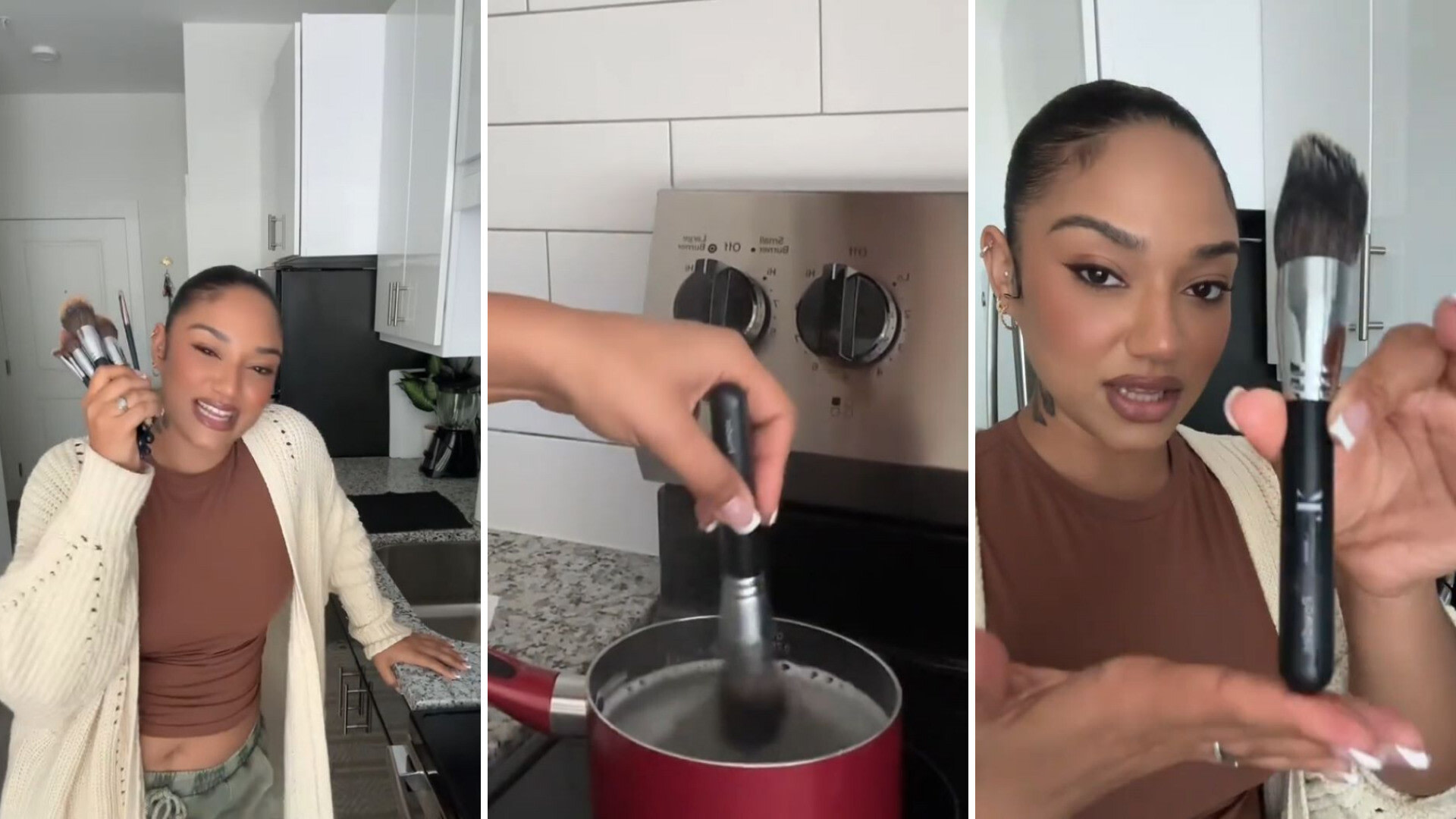 Makeup aficionado Kiki Lee (@_kikilee_) recently shared her brush-cleaning technique on TikTok, noting that a few household staples have kept her brushes alive for several years.