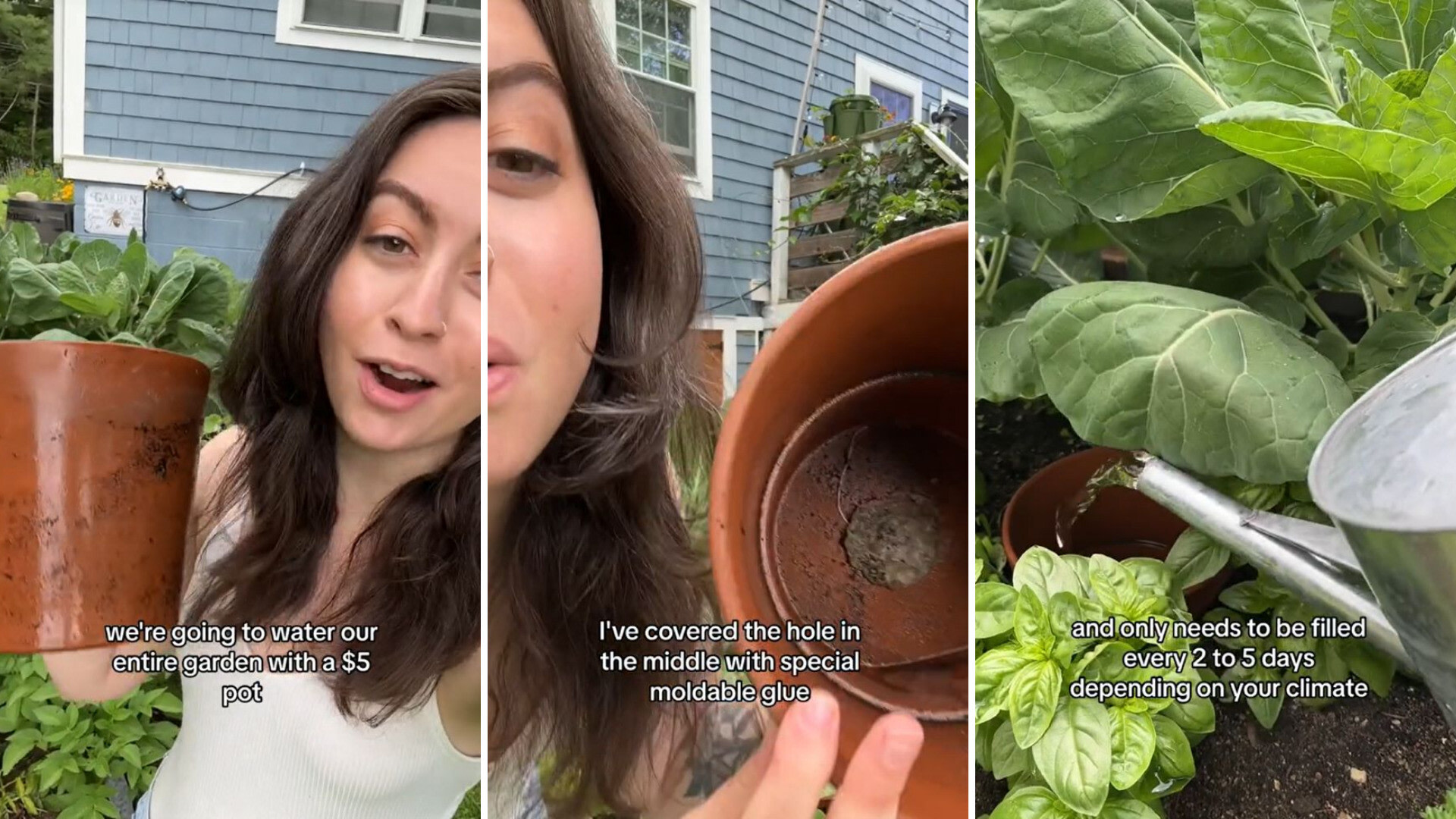 "An 8-inch pot can water up to 2 feet away on all sides," she adds, and finishes by informing viewers that this method also "encourages plants to develop stronger root systems."