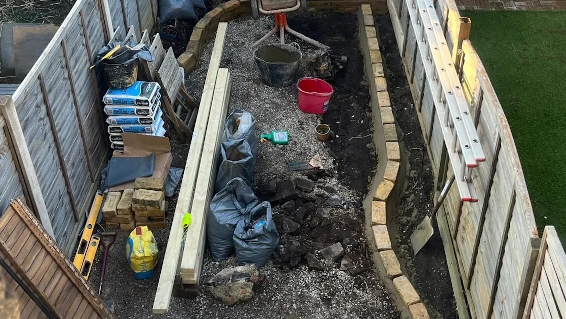 They posted photos from the yard renovation process. The little lawn began as a dark, dirty, and gloomy space lacking in color and life. With time, however, the Redditor completely changed the sad space with full flower beds, flower pots, and a simple garden table.