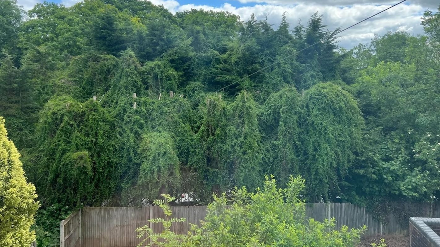 Such invasive plant species are also notoriously difficult to completely eradicate. If the homeowner here does decide to fight against these vines — if not to save the potentially already dead trees, then at least to stop it from spreading any further — they are likely in for quite a battle.